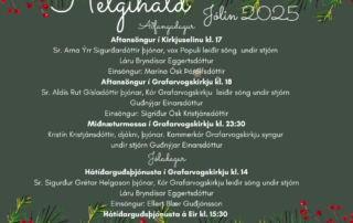 Fjölbreytt helgihald verður í Grafarvogssókn yfir jólahátíðina 2025... Aðfangadagur: Kirkjusel í Spöng - Aftansöngur kl. 17:00 Sr. Arna Ýrr Sigurðardóttir þjónar. Vox Populi leiðir söng undir stjórn Láru Bryndísar Eggertsdóttur organista. Einsöngur: Marína Ósk [...]