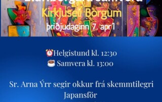 Helgistund - samvera eldri borgara þriðjudag 24. mars Helgistundin hefst kl. 12:30 Eftir hana er samvera eldri borgara. Edda Björgvinsdóttir leikkona kemur í heimsókn. Kaffi og meðlæti. Allir velkomnir. Hlökkum til að sjá ykkur. Kristín, [...]