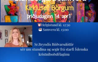 Kirkjusel í Borgum Þriðjudaginn 14. apríl verður eldriborgara samvera og helgistund kl. 12:30 Sr. Bryndís Böðvarsdóttir sér um stundina ásamt Guðnýju Einarsdóttur organista. Bryndís starfar hjá SÍK Samband íslenskra Kristniboðsfélaga, hún mun segja frá fjölbreyttu starfi Kristniboðssambandsins [...]