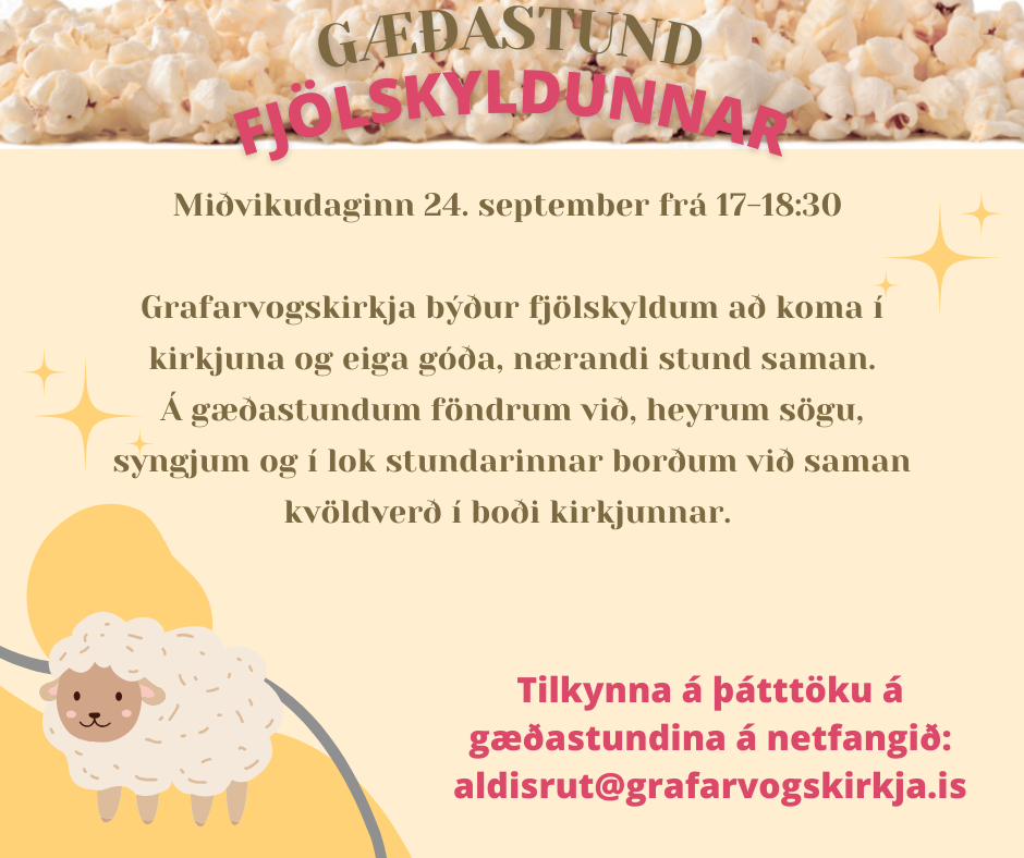 ATH! Samvera eldri borgara verður kl. 12:30-14:30 í Kirkjuselinu í Borgum! Kyrrðar- og fyrirbænastund hefst kl. 12:30. Að henni lokinni er samvera eldri borgara með söng og fræðslu. Gestur dagsins verður Guðný Einarsdóttir organisti Grafarvogskirkju. [...]