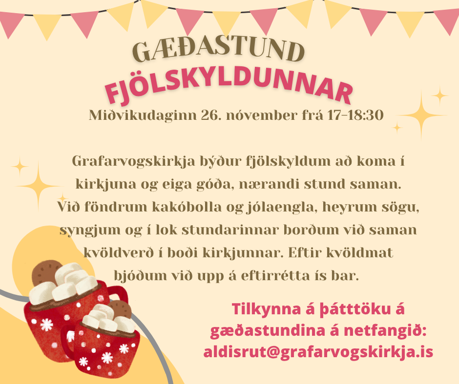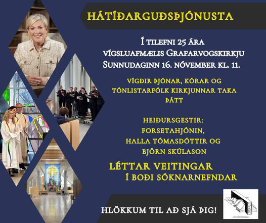 Guðsþjónusta í Grafarvogskirkju kl. 11:00. Börn úr Tónlistarskóla Grafarvogs koma fram. Sr. Arna Ýrr Sigurðardóttir þjónar. Sunnudagaskóli er á sama tíma á neðri hæð kirkjunnar. Selmessa í Kirkjuselinu í Spöng kl. 13:00 Sr. Aldís [...]