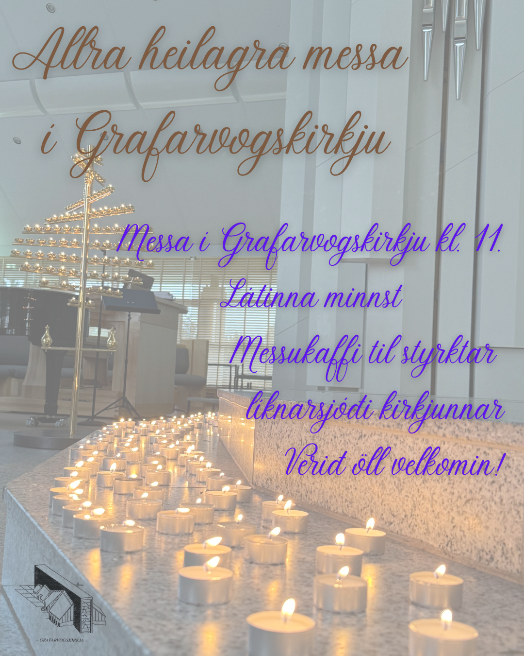 Sunnudaginn 2. nóvember kl. 11:00 verður Allra heilagra messa í Grafarvogskirkju. Vígðir þjónar kirkjunnar þjóna fyrir altari. Sr. Sigurður Grétar Helgason prédikar. Látinna minnst í kertaljósaathöfn. Kór Grafarvogskirkju undir stjórn Guðnýjar Einarsdóttur leiðir söng. Að [...]
