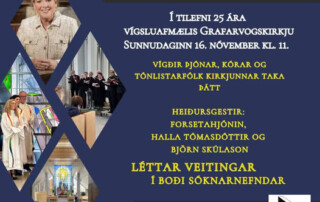 Hátíðarguðsþjónusta verður í Grafarvogskirkju sunnudaginn 16. nóvember kl. 11:00. Vígðir þjónar kirkjunnar ásamt kórum og tónlistarfóli kirkjunnar taka þátt í guðsþjónustunni. Heiðursgestir verða forsetahjónin Halla Tómasdóttir og Björn Skúlason. Léttar veitingar í boði sóknarnefndar. [...]