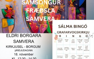 Samvera eldri borgara í Kirkjuselinu í Spöng 18. nóvember... Samveran hefst kl. 12:30 með helgistund. Í dag verður spilað sálmabingó. Samsöngur og spjall. Verið öll velkomin!