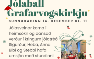 Sunnudaginn 14. desember kl. 11:00 verður jólaball í Grafarvogskirkju! Við dönsum í kringum jólatré og syngjum. Jólasveinar koma í heimsókn. Umsjón hafa Sr. Sigurður, Heba, Anna Bíbí og Stebbi. Hlökkum til að sjá ykkur!